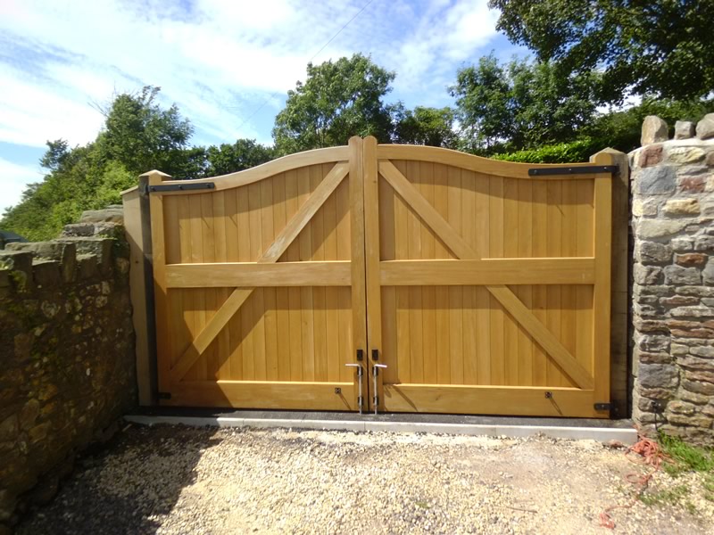 Reverse convex wooden driveway gate Somerset
