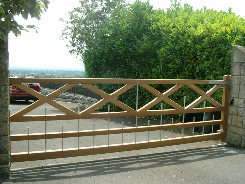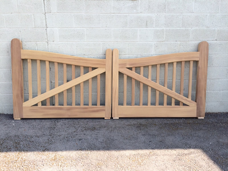 Natural finish iroko driveway gate. Also available as a pedestrian gate.