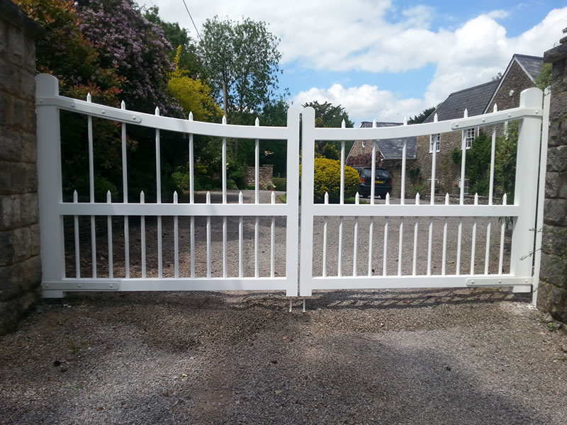 White painted wooden entrance gate pair. Somerset